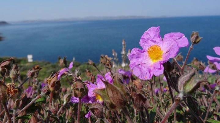Συνήθως κάνει σχηματισμούς μαζί με άλλα φρύγανα (π.χ. αστοιβή). Όρθιος ή απλωμένος έως 1μ. αειθαλής θάμνος. Άνθη 4-6 εκ., έντονα ροζ, με 5 σέπαλα, ωοειδή με οξύ άκρο, με πέταλα “τσαλακωμένα”, καρπός ξυλώδης κάψα.